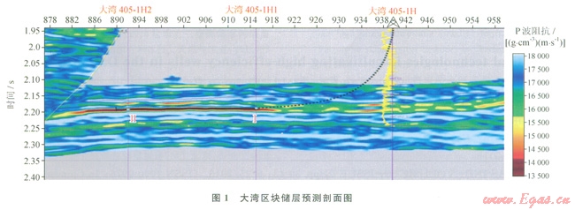 大灣區(qū)塊氣藏埋深一般在4000m左右,同時(shí)受上部膏鹽巖影響,造成飛仙關(guān)組和長(zhǎng)興組地震響應(yīng)特征弱,再加上發(fā)育逆斷層、儲(chǔ)層非均質(zhì)性強(qiáng)、厚度變化大等因素,大大增加了儲(chǔ)層預(yù)測(cè)和含氣性預(yù)測(cè)的難度。通過(guò)融合超深礁灘相儲(chǔ)層預(yù)測(cè)技術(shù)和含氣性預(yù)測(cè)技術(shù),定量預(yù)測(cè)優(yōu)質(zhì)氣層空間展布特點(diǎn),及時(shí)優(yōu)化井身軌跡,確保盡量多鉆遇優(yōu)質(zhì)氣層[2]。