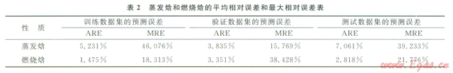 2中展示了新構(gòu)建燃燒焓和蒸發(fā)焓模型的結(jié)果。從表2中可以看出,經(jīng)過上述處理后,所構(gòu)建的ANN模型在驗(yàn)證集和測試集中的預(yù)測表現(xiàn)有所改善。