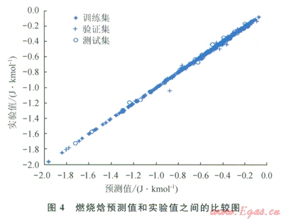 對燃燒焓而言,盡管訓(xùn)練集與另兩個(gè)集之間的一致性不會直接改善預(yù)測表現(xiàn),但卻表明了模型的預(yù)測質(zhì)量有所改善。