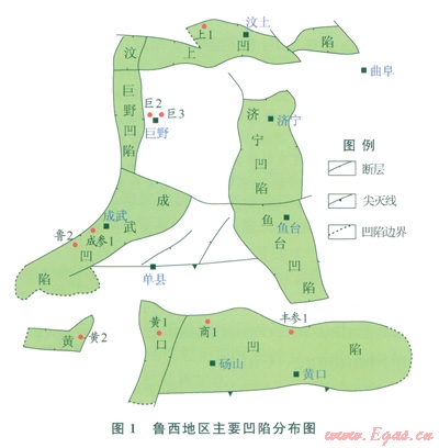 魯西地區(qū)是指郯廬斷裂以西、蘭聊斷層以東、渤海灣盆地以南、南華北盆地黃Ll凹陷及以北的廣大區(qū)域。該區(qū)上古生界煤系烴源巖發(fā)育,區(qū)內發(fā)育多個中、新生代含鹽凹陷(1),其中規(guī)模較大的凹陷包括覆蓋于魯西隆起之上的汶上、濟寧、巨野、成武、魚臺凹陷和南華北盆地的黃口凹陷[1]。這些凹陷內的古近系鹽膏巖十分發(fā)育,與東濮凹陷文23煤成氣田具有相似的成藏條件[2-9]。