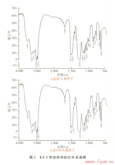 2)利用建立的實(shí)驗(yàn)方法,對(duì)KY-2型耐高溫泡排劑在常溫和170℃下老化24 h后進(jìn)行分子量、聚集數(shù)、核磁光譜、紅外光譜實(shí)驗(yàn)分析。在此基礎(chǔ)上進(jìn)行現(xiàn)場(chǎng)實(shí)驗(yàn)并獲得較好的效果。研究表明,KY-2型泡排劑在深井高溫條件下具有良好的起泡、穩(wěn)泡和帶水能力,在有水氣藏排水采氣作業(yè)中具有良好的應(yīng)用前景。