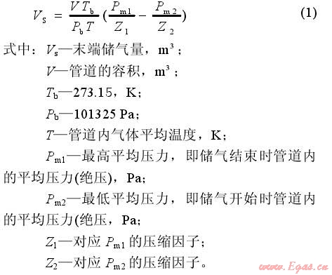 利用高壓、次高壓供氣管道末端儲氣可根據(jù)公式(1)計(jì)算: