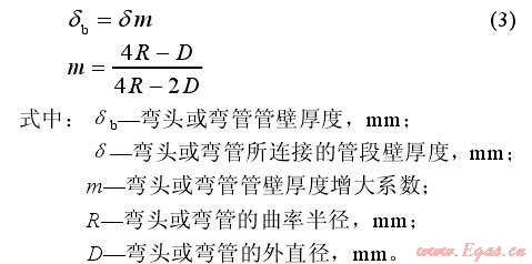 彎頭和彎管的管壁厚度根據(jù)《輸氣管道工程設(shè)計(jì)規(guī)范》(GB502512003)中公式(3)計(jì)算: