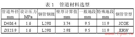設(shè)計(jì)強(qiáng)度系數(shù)可根據(jù)《城鎮(zhèn)燃?xì)庠O(shè)計(jì)規(guī)范》(GB500282006)的分級地區(qū)選取合理系數(shù),高壓、次高壓管道已采用了較高等級的材料,焊接系數(shù)取1。如寶雞市天然氣三期利用工程就使用D406.4螺旋縫埋弧焊鋼管和D323.9直縫埋弧焊鋼管,材質(zhì)L290MB,B級鋼管,設(shè)計(jì)壓力1.6MPa,壁厚根據(jù)管線敷設(shè)所在不同地區(qū)劃分標(biāo)準(zhǔn)(考慮了今后發(fā)展),其選取如表1所示: