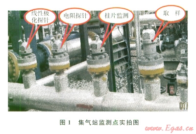 緩蝕劑效果評價主要依據(jù)腐蝕監(jiān)測數(shù)據(jù)進(jìn)行系統(tǒng)的評價[5];。普光氣田目前的監(jiān)測手段主要有電阻探針(ER)、線性極化探針(LPR)、電指紋(FSM)、掛片監(jiān)測(CC)、化學(xué)介質(zhì)分析等(1)。