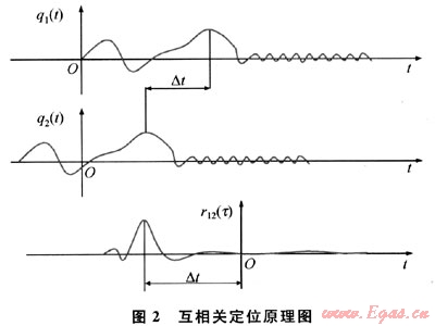 通過求相關函數r12(r)的極大值和極大值對應的τ0,即可進行泄漏檢測和定位?;ハ嚓P定位原理圖如圖2所示。