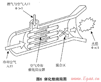 上述擴散火焰燃燒和貧預混燃燒的特點是:在擴散火焰燃燒中,燃氣和空氣是由分離的通道導入。燃氣和空氣流混合處的火焰是穩(wěn)定的,在接近Φ=1(或α=1)時,燃燒進行得十分迅速,火焰溫度很高,在空氣中足以形成N0x。但貧預混式燃燒是燃氣與壓縮空氣預先混合,過??諝饨档土嘶鹧鏈囟?,是可以避免熱N0x的形成。但燃燒室應在當量比Φ很小的范圍內(nèi)操作,避免Φ<0.5(α>2)時的熄火和Φ>0.6(α<1.6)時NOx的形成。