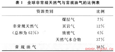 據中國首次非常規(guī)油氣資源國際研討會資料,權威專家估算的全球非常規(guī)天然氣資源量為2338.2×1012m3,約為世界常規(guī)天然氣資源量(512.6×1012m3)的4.56倍。