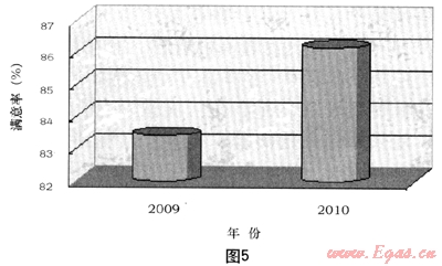 圖5為我公司2009/2010年第三方測評抄表業(yè)務(wù)滿意度變化圖。我們從圖5可以看出,自從推廣了一報(bào)一抄抄表模式后,大大減少了入戶次數(shù),抄表擾民系數(shù)降低,得到了廣大用戶的認(rèn)可。由第三方開展的客戶滿意度調(diào)查結(jié)果顯示,2010年的抄表業(yè)務(wù)客戶滿意度從2009年的83.42%提升到86.16%,上升近3個(gè)百分點(diǎn)。