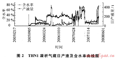 THN1凝析氣藏的生產(chǎn)動(dòng)態(tài)資料顯示,2007年7月開(kāi)始排液采氣時(shí),排液井僅2口——THN2、THN4H井,且排液僅15d(7月12~27日)后即關(guān)井,至8月12日又才開(kāi)井排液。排液井?dāng)?shù)少、排液時(shí)間短,在短時(shí)間內(nèi)不能完全阻止已推進(jìn)氣藏內(nèi)部的邊水繼續(xù)向前推進(jìn),導(dǎo)致內(nèi)部氣井,甚至一線井都不見(jiàn)效。