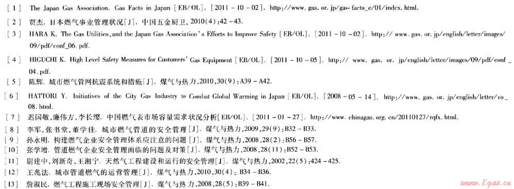 根據(jù)我國一些城市公布的統(tǒng)計結(jié)果,城市燃氣安全事故已成為我國繼交通事故、工傷事故之后的第三大殺手。燃氣事故頻出給政府、燃氣相關(guān)企業(yè)乃至公眾敲響了警鐘,也引發(fā)了關(guān)于如何提高城市燃氣安全的思考。在城市燃氣安全管理方面,日本有很多經(jīng)驗值得借鑒。