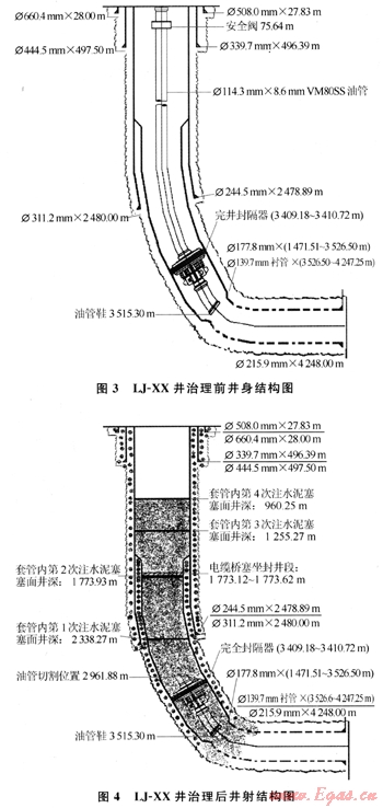 四川油氣田組織專家組對可能存在風(fēng)險的高含硫氣井進行了重新審視和評估,并確定了一批高含硫氣井必須實施永久性封閉。下面介紹LJ-XX井治理典型實例。