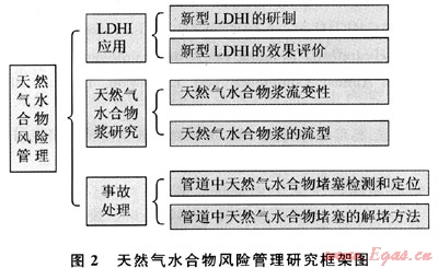 值得高興的是針對上述2個方面的問題,研究人員正在全力解決。目前越來越多的LDHI正被研制出來[11],國外已經(jīng)有很多油氣田在試驗這些新的抑制劑。與此同時,針對含天然氣水合物的油氣混合物漿的流動特性及堵塞特性的研究也在全世界如火如茶地展開。目前天然氣水合物風險管理的研究框架如圖2所示,目的就是為石油天然氣工業(yè)提供經(jīng)濟安全的油氣輸送方案[12~19]。