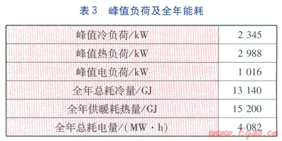 該醫(yī)院的峰值負(fù)荷及全年能耗匯總見(jiàn)表3。