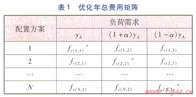 1是由各種配置方案在3種不同負(fù)荷需求下優(yōu)化得到的年總費(fèi)用所構(gòu)成的矩陣。“*”表示在某種負(fù)荷需求下,該方案的年總費(fèi)用最小。