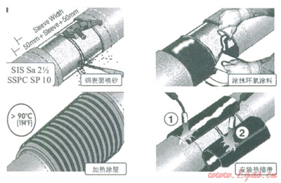 海管鋪設需要使用鋪管船等大型設備,費用非常高。為了控制施工成本必須盡可能縮短節(jié)點防腐的施工時間。熱縮帶的施工非常方便,是目前使用最廣泛的海管節(jié)點防腐材料。