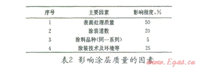 表面處理的好壞對涂層質(zhì)量影響很大,有學者研究過影響涂層質(zhì)量和壽命的各種因素,結(jié)果如表5所示[1],顯然表面處理的質(zhì)量是對涂裝質(zhì)量影響最大的因素。在海管節(jié)點的防腐施工中表面處理也非常關鍵,為了保證防腐效果必須對鋼表面進行噴砂處理,達NSa25級以上。
