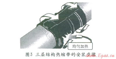 三層結(jié)構熱縮帶與兩層結(jié)構熱縮帶主要的區(qū)別就在于多了一層環(huán)氧涂層,它能夠有效的浸潤噴砂后的鋼材表面,形成對鋼表面的全面保護,同時環(huán)氧樹脂防水性能優(yōu)異,大大提高節(jié)點防腐效果。但是環(huán)氧涂料是液態(tài)的,在它固化之前不能安裝熱縮帶,自然固化可能需要幾十個小時的時間。為了使它在幾分鐘之內(nèi)固化就必須對它加熱,使用中頻感應加熱器不但效率高,而且加熱均勻質(zhì)量好。