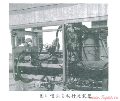 噴砂施工會造成大量的磨料飛濺和粉塵飛揚,造成嚴重的環(huán)境污染,一般鋼結(jié)構的噴砂施工必須在封閉的廠房或者大棚內(nèi)進行。而海管節(jié)點噴砂作業(yè)只能在鋪管船的作業(yè)線內(nèi)進行,不但空間小而且布置著各種設備,人員眾多,無法使用常規(guī)方法進行。所以必須使用專用的噴砂設備。我公司使用的是真空噴砂機配合噴頭自動行走裝置。真空噴砂機是一種能夠?qū)崿F(xiàn)磨料自動回收的噴砂機,施工時噴頭與鋼材表面接觸形成密閉空間,鋼表面反射的磨料和灰塵等被吸入噴砂機,對周圍環(huán)境污染小。噴頭自動行走裝置能夠?qū)⒄婵諊娚皺C的噴頭固定在海管節(jié)點表面,按照一定速度移動,保證噴砂質(zhì)量的同時快速的完成整個節(jié)點表面的噴砂施工。