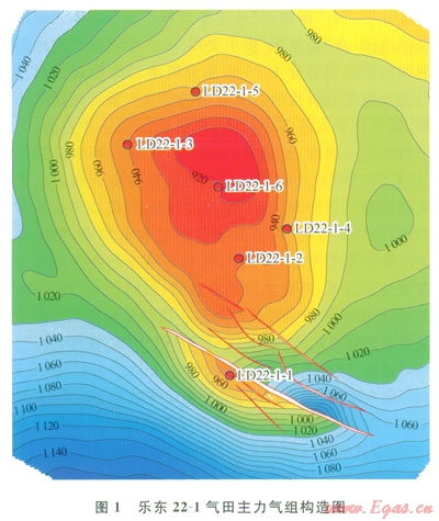 根據(jù)l993年采集的常規(guī)二維地震資料,確定樂東22-l構造預探井鉆探基本原則為:①地震資料可靠度較高的位置;②有自圈的位置;③縱向可能多層且能控制一定儲量的位置?;诖耍谌﹂]的東南處鉆探I井。通過鉆探,在第四系樂東組二段、三段和新近系鶯歌海組一段共發(fā)現(xiàn)6套氣藏,測試產(chǎn)能高(無阻流量介于23~238m3/d),氣體組分差異大(非烴含量介于15.4%~85.7%),證實了該區(qū)的含氣性。但要將其經(jīng)濟開發(fā)還需繼續(xù)擴大儲量規(guī)模。