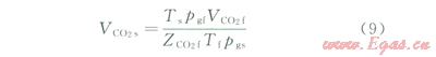 同樣可寫出井底條件下體積為CCO2f的非烴氣在地面條件下的體積VCO2s,即