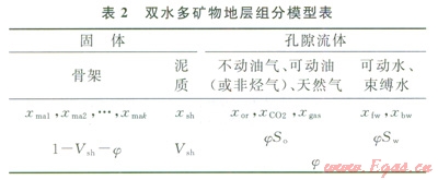 假設(shè)組分不動(dòng)油、可動(dòng)油(或非烴氣)、可動(dòng)水、束縛水、天然氣、泥質(zhì)以及巖石的各種骨架礦物在地層中的相對(duì)含量分別為:xorxco2,xfw,xbwxgas,xshxmal,xma2,…,xmak則有如下關(guān)系式。