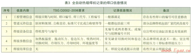3是目前全自動(dòng)型熱熔焊機(jī)焊口信息記錄情況。從表中可看出,大部分焊機(jī)記錄的焊口信息既存在信息不齊全的問題,義存在術(shù)語表述不符合同家安全技術(shù)規(guī)范[13]的不足。常見缺省的內(nèi)容包括焊接設(shè)備信息和焊接參數(shù)信息。然而,對于焊口質(zhì)量管理來說,只有焊口信息完備且具有可追溯性才具有真正的意義。