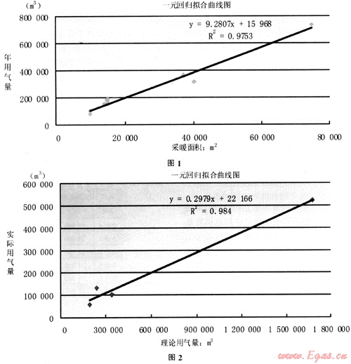一般來說,工商業(yè)采暖面積在10000m2以上,年度采暖用氣較大,建議回歸方程中a=15967.65基本可忽略不計,即工商業(yè)的采暖用氣量可按9m3/m2·a進行估算。