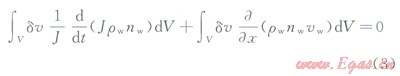 式中J為儲層孔隙的體積改變率,無因次;nw為孔隙中液體體積與儲層總體積的比值,無因次;rw為儲層液體密度,kgm3;x為液體流動的方向向量,m;dt為時間步,s;uw為儲層液體的流動速度,ms