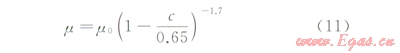 式中m為等效后的液體的黏度,Pa·sm0為無支撐劑的液體黏度,Pa·sC為攜砂液中支撐劑的體積濃度,無因次。
