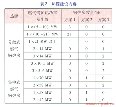 一般而言,熱源方案的確定是以“保障供熱安全,技術(shù)工藝合理,工程投資經(jīng)濟(jì),環(huán)保效益突出”為原則,從區(qū)域總體規(guī)劃及大氣污染治理的總體要求出發(fā),從技術(shù)、經(jīng)濟(jì)、工程實(shí)施可行性等多角度進(jìn)行比選。針對(duì)本工程的區(qū)域特點(diǎn),在常規(guī)的比選條件的基礎(chǔ)上,結(jié)合總體規(guī)劃的分期開(kāi)發(fā)要求,提出了3種熱源方案進(jìn)行比選(見(jiàn)表l),3種方案均采用分期建設(shè)方式。