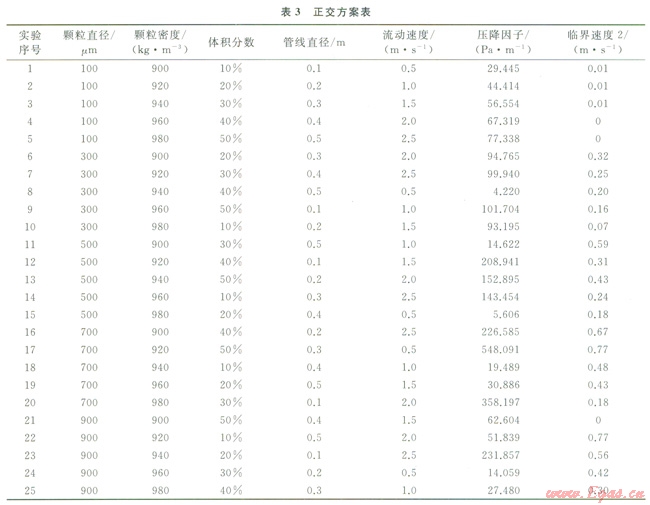 此外,經(jīng)過對(duì)比可知,普遍常識(shí)所認(rèn)為的對(duì)流動(dòng)狀態(tài)有較大影響的固相顆粒體積分?jǐn)?shù)卻是對(duì)“臨界速度2”影響最小的參數(shù),分析原因,筆者認(rèn)為固相顆粒體積分?jǐn)?shù)在較低濃度時(shí)(小于35),對(duì)臨界速度2”影響不大,而只有在較高濃度,尤其是濃度接近最大填充率的時(shí)候,才會(huì)對(duì)“臨界速度2”有顯著影響。
