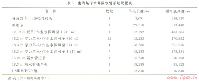 根據(jù)上述隔水管系統(tǒng)配置可以很方便形成隔水管下放列表,用以指導(dǎo)現(xiàn)場作業(yè)。