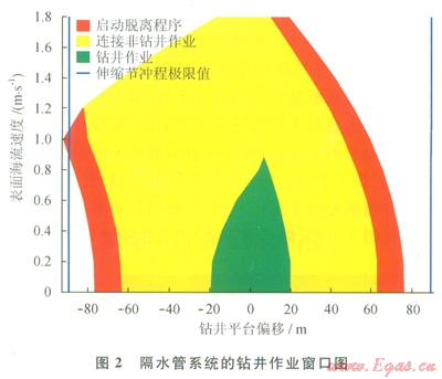 鉆井隔水管系統(tǒng)鉆井作業(yè)窗口分析與確定的目的是明確進(jìn)行正常鉆井作業(yè)、連接非鉆井作業(yè)和解脫作業(yè)的環(huán)境載荷條件和鉆井平臺偏移范圍,形成相應(yīng)的綠圈、黃圈和紅圈,可為隔水管的連接作業(yè)提供指導(dǎo)。