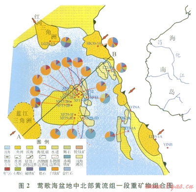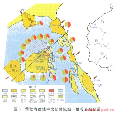 l顯示鶯歌海盆地圍區(qū)發(fā)育多條河流,西北部的紅河,總流域面積達(dá)ll.9×104km2,年輸沙量為1300×104t[6];海南島西部為昌化江,總長(zhǎng)度約為250km,河水含沙量為0.392kgm3[7],小于黃河而大于長(zhǎng)江;此外,海南島的西部尚有多條獨(dú)流入海的河流。越南東部也有馬江、藍(lán)江、宋河、賢良河等河流,性質(zhì)與海南島類似。
