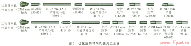 5)改進(jìn)技術(shù)細(xì)節(jié)。改進(jìn)控向線在鉆桿內(nèi)的固定方式,避免了在長(zhǎng)距離管道穿越過程中高速流動(dòng)的鉆井液對(duì)控向線長(zhǎng)時(shí)間沖刷而引發(fā)的短路現(xiàn)象。合理配置噴漿短節(jié)的數(shù)量以及水嘴孔徑,使得在保持充分潤(rùn)滑孔壁、減少摩擦阻力的同時(shí),保證了鉆井液馬達(dá)的工作效率,提高了鉆進(jìn)速度,縮短了導(dǎo)向孔的施工時(shí)間。