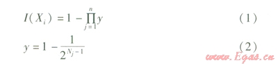 y——中間變量,當(dāng)?shù)?span lang="EN-US">i個(gè)底事件Xi屬于第j個(gè)最小割集時(shí),y采用式(2)計(jì)算;當(dāng)?shù)?span lang="EN-US">i個(gè)底事件Xi不屬于第j個(gè)最小割集時(shí),y1