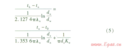 Kw——從絕熱層外表面至保護(hù)層外側(cè)空氣之間的傳熱系數(shù),W/(m2·K),為11.6 W/(m2·K)