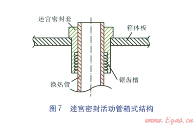 采用端面填料函密封的活動管箱式結(jié)構(gòu)時,一組管箱的制造安裝費用為7.64×104元。采用迷宮密封活動管箱式結(jié)構(gòu)時,一組管箱的制造安裝費用為13.52×104元。前者的使用壽命為l0~l2個月,后者的使用壽命為6年以上。因此,在滿足使用壽命的前提下,采用迷宮密封活動管箱式結(jié)構(gòu)的空氣預(yù)熱器的技術(shù)經(jīng)濟(jì)性可以接受。