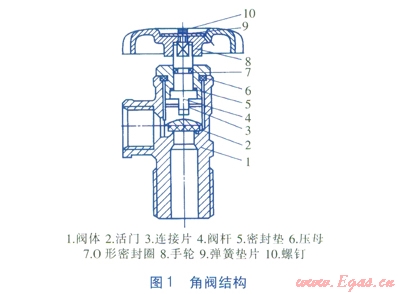 角閥帶有手輪,順時(shí)針轉(zhuǎn)動(dòng)可關(guān)閉角閥,角閥結(jié)構(gòu)見圖1,與角閥配合的調(diào)壓器外形見圖2。