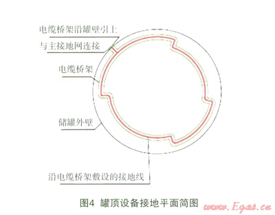 為滿足設備接地要求,外方利用在儲罐頂部沿接線箱、接線盒集中部位敷設的電纜橋架巾通長敷設的截面為70mm2絕緣銅絞線(green insulated stranded copper conductor)作為接地線,該接地線與主接地網連接。罐頂設備包括橋架、平臺扶手、平臺出入口靜電消除器、放散管接地板、LNG潛液泵等均采用截面為70mm2絕緣銅絞線與橋架內接地線連接。罐頂接線箱、插座等均采用截面為35mm2絕緣銅絞線與橋架內接地線連接。