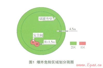 儲罐所處爆炸危險環(huán)境的危險介質是甲烷、其分級分組為Ⅱ AT1。危險介質及其分級分組與GB50058—92《爆炸和火災危險環(huán)境電力裝置設計規(guī)范》附錄三氣體或蒸氣爆炸性混合物分級分組舉例完全一致。
