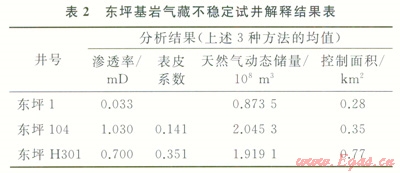 通過對3口井不穩(wěn)定試井解釋結(jié)果的統(tǒng)計表明(2),各井控制儲量、控制面積、滲透性等在不同井段和井區(qū)差異較大,同樣說明基巖內(nèi)部的非均質(zhì)性較強。