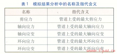 模擬結(jié)果分析中的名稱及指代含義見表1。埋地管道內(nèi)水流速為10mmin