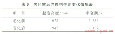 將10g泡排劑放入反應(yīng)釜中老化24h,用蒸餾水配制體積分?jǐn)?shù)為0.3%的液體,測量起泡高度和半衰期,老化前后泡排劑性能變化情況如表5所示。