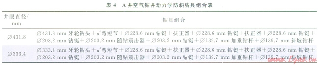 4)通過在A井空氣鉆井現(xiàn)場試驗(yàn),提高機(jī)械鉆速3~5倍,節(jié)省鉆井時(shí)間119d,井斜滿足工程要求,取得良好應(yīng)用效果。