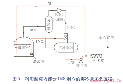 利用儲罐內部分LNG制冷的再冷凝工藝流程見圖5。