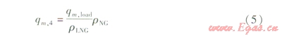體積置換指的是隨著LNG來液的增加,儲罐中的空間被LNG所填充,使得氣相空間縮小,為維持儲罐的微正壓,部分BOG被擠出儲罐。依據其定義,體積置換產生的BOG量可用公式(5)進行計算[4]