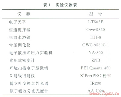 實(shí)驗(yàn)所用材料包括G級(jí)油井水泥、鉆井液(取自L002 4井現(xiàn)場,密度2.26gcm3)、生物增黏劑、鐵礦粉、石英砂、微硅、分散劑、降失水劑、緩凝劑、FeCl3、A1C13CaCl2MgCl2等,水泥漿配方為L002-4井固井水泥漿配方(常規(guī)密度1.90gcm3,高密度2.30gcm3)。實(shí)驗(yàn)儀器如表1