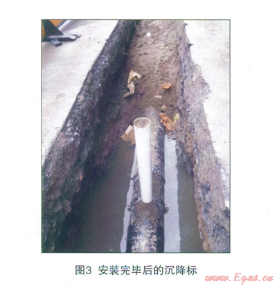 沉降標在管道施工的同時進行安裝,有專業(yè)的安裝施隊進行,保證監(jiān)測的準確性。沉降標的安裝見圖3所示。
